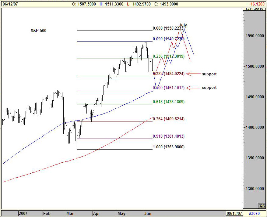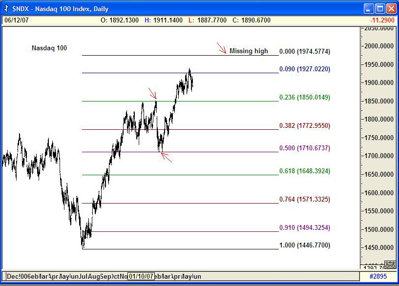 Yet the view that we are about to espouse may surprise many readers: the Fibonacci rhythm that the market has developed over recent months in charts such as the S&P 500, Nasdaq 100, and Nasdaq Composite (all pictured above) is simply not a rhythm that suggests ongoing Armageddon in the current decline. Instead, we believe that this rhythm suggests yet one more new market high (as irritating and stupid as that may be) is yet to come -- maybe as soon as early to mid-July!